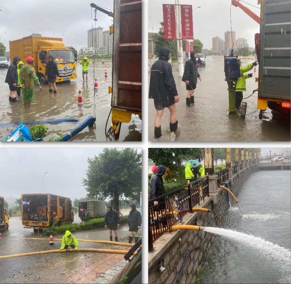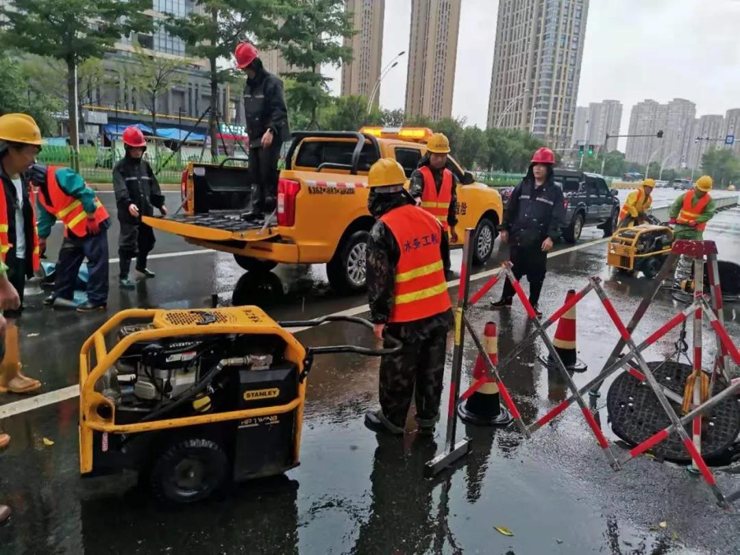 高新区水务公司迅速对辖区各项防汛工作进行周密部署,共派出抢险人员50余名,布防值守点3处,投入工具车8部、应急抢险车1部、动力站及抽水设备各6套、安全围挡50面。所有抢险人员快速出动,清掏井盖表面杂物,及时打开各主干道进水井与检查井,针对下穿通道等较为低洼地带,及时出动动力站等设备,累计处理积水点10处。