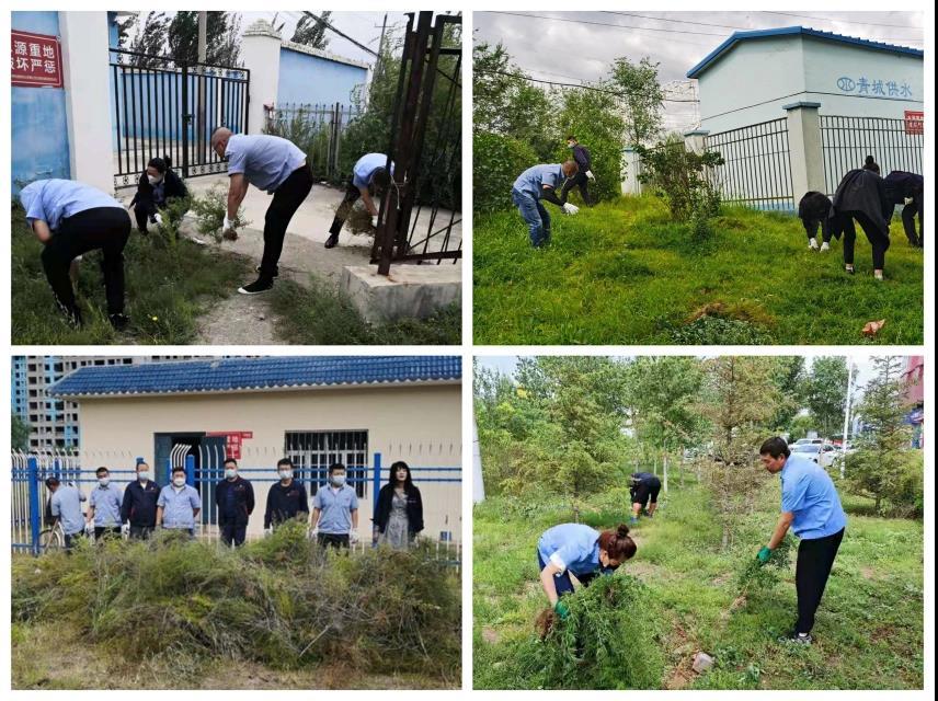供排水公司党委所属各级党组织开展集中清理蒿草行动
