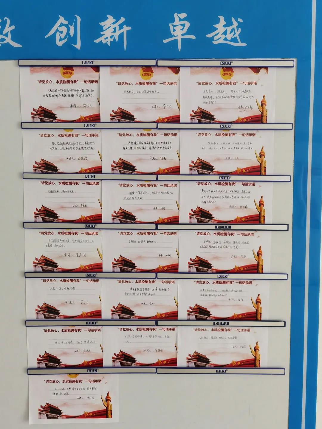 团员青年们纷纷表示,要积极担当作为,不断增强志气、骨气和底气。并各自写下了“请党放心 水质有我”一句话承诺,团员青年们表示将用实际行动,不负韶华,不负时代,向着第二个百年奋斗目标前进,为公司高质量发展舔砖加瓦。