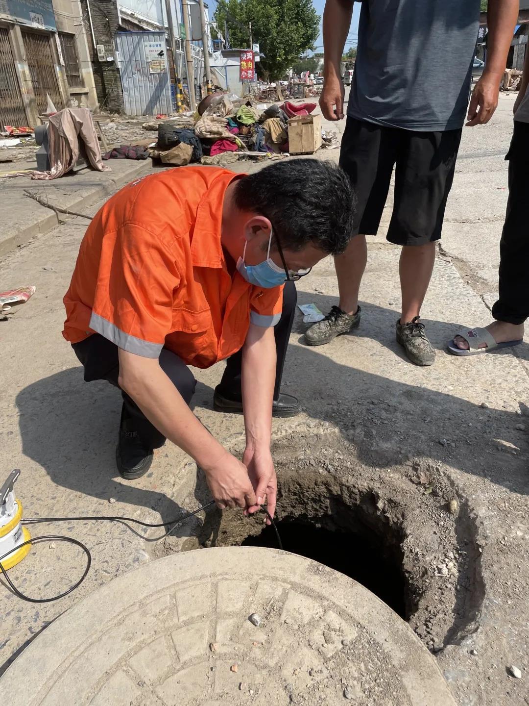 刚进入河南境内,就看见满载救援物资的大货车一辆接着一辆,从眼前疾驰而过,我和同事的心里不由得紧张起来,看来灾区情况实在不容乐观。救援车从高速下道到达卫辉,果然情况比料想的还要糟,被洪水冲倒的大树,淹没的庄稼,冲垮的房屋和水泡过的车辆,空气中弥漫着洪水的腥味,但看着一面面鲜红的旗帜迎风飘扬和四处忙碌的身影,我突然明白,越在危难时刻,越能感觉到祖国的伟大,越能感受到人民的凝聚力。在卫辉污水处理厂简单地开了个动员会后,我们被分派到卫辉自来水公司协助开展救援工作。因时间紧急,当地自来水公司领导向我们简略介绍了管网线路情况后,就立马带我们到现场开展测漏工作。另外,由于灾后的卫辉不具备住宿条件,我们只能住在距离卫辉最近的40公里外的新乡。为抢时间、赶进度,每天早上天刚亮我们就要出发赶往管道测漏现场,中午坚持就地吃快餐和方便食品,累了在地上躺一躺、就地靠一靠便算作休息,每天工作到很晚,大家才拖着疲惫的身躯驱车回到新乡休息。
