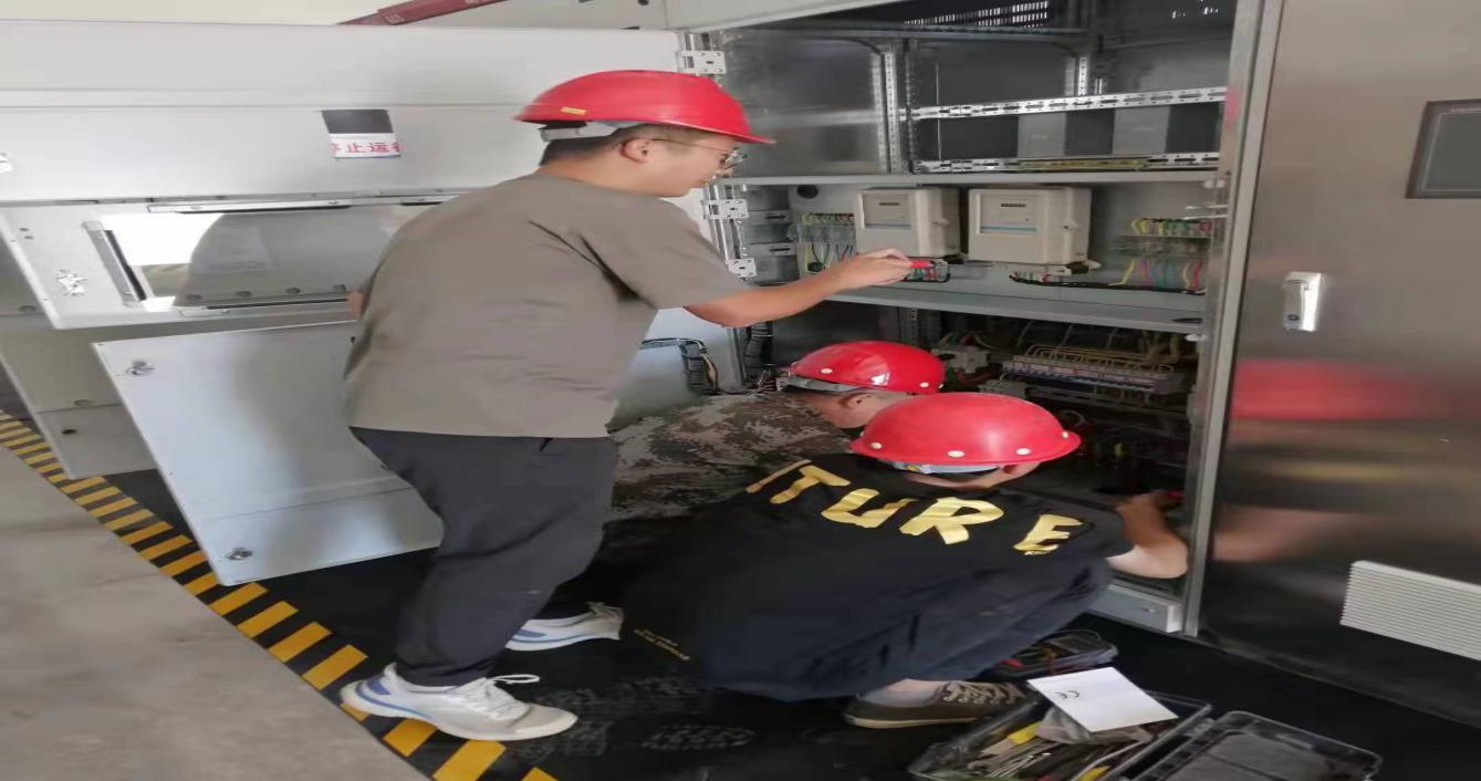 说干就干,在制定好实施计划并做好工器具、配件的准备工作后,设备技术部全员在主任工程师尹胜勇的带领下,于8月下旬正式投入了紧张有序的配电室改造工作中。首先UPS电池柜的改造和重新布线势必会造成水厂5眼机井和部分用电设施的长时间停电,为不影响供水生产,减少停电造成的影响,通过大家的集思广益,决定在拆除旧UPS电池柜前先是通过加装零时电源线转代负荷的方式避免大面积停电。其次就是柜内线缆、空开、电表、互感器、指示灯、电池的拆除和重新安装工作,虽然繁琐但不复杂,更多需要大伙们细致考虑和协同配合。其实配电柜的改造更加讲究工艺,最终不仅要实现用电功能,柜内线缆设备还需安全可靠整洁美观。因此每一根电缆的走向,每一个电气设备的布置,每一个接线端子的安装都需要认真思考,这样既能提高效率,也能减少因安装位置和接线错误造成的返工。在分配好每个人的任务后,配电室改造施工就在一片如火如荼中彻底展开。你递给我一个扳手,我帮你固定个螺栓,在尹工的周密指挥和大家有条不紊的配合下,仅用了4天时间就完成了柜内电气设备的安装和布线工作。最后仅剩下UPS电池组的新柜安装,但又一个新难题的出现拦住了大家的脚步,原因是从旧柜拆除下来的UPS电池托架和新柜尺寸不匹配而无法安装。正当大伙为此一筹莫展之时,曹师傅的一句“能不能直接不用旧电池托架,把废旧配电柜的固定板能拆下来,加工一下当托架怎么样?”启发了大家,立刻分头去将报废旧配电的固定板拆了下来,根据新柜的测量尺寸,使用切割机重新进行了加工并用手电钻打眼,分三层固定在新柜内。在固定牢靠后,一起将11块100AH的更换电池安装在了新加工的托架上。终于忙碌到第5天的晚上8点成功送电,所有设备经检查均运行正常。