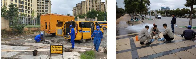 在开展现场处置的同时,调度中心及时将初步判断结果反映至COP15供水突发事件应急处置领导小组在公司内部召开紧急会议,商讨拟采取的应急措施及对策。紧急会议及时下达了根据《COP15供水保障方案》启动相关应急方案及管道抢修方案的命令,各相关部门按照方案要求各司其职,开展工作,同时根据互保互通商请协调通用水务调度中心开启互保互通通道保障场馆供水,水质部对在场馆周围按计划开展水质监测工作。