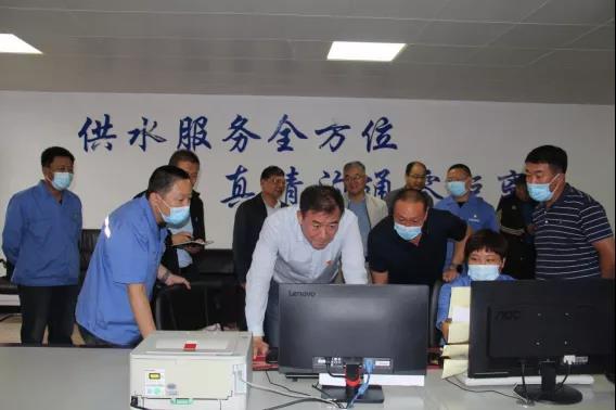 调研现场,杨东和向调研组详细介绍了供水能力、水源调度、管网运行、水质监测等方面的情况。