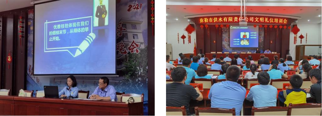 2021年9月15日,弥勒供水公司应《弥勒市政务服务管理局关于开展市政务服务中心窗口工作人员文明礼仪培训的通知》,以集中培训的方式开展市政务服务中心窗口工作人员及公司其他相关服务人员文明礼仪培训活动,共计69人参加。