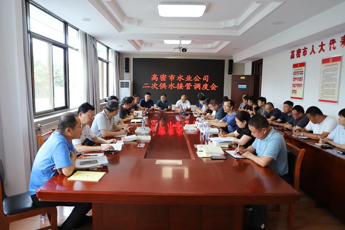二次供水接管面大,受益群众广,共有200多供水小区需要接管。针对二次供水接管工作,高密市水业公司党委到接管小区实地调研,并多次召开调度会,分析接管过程中存在的问题和困难,敲定具体接管措施,有序推进接管工作。接管需先由小区业主委员会书面移交申请,在公司确认用户水表位置、底数和用水性质并核实收回物业公司欠缴水费后,再对小区无负压设备、供水泵房、二次供水管网、水表等设备设施进行接管,与用户签订完供水合同,在系统立户之后实现接管。为加快工作进度,工作人员加班加点验收二次供水设备设施,抄表员积极与业主对接,利用晚上、周末用户在家时间上门抄表和签订供水合同,确保接管工作正在顺利进行。