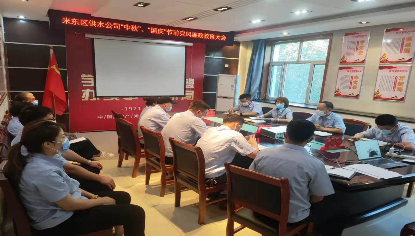 为进一步巩固中央八项规定精神成果,严防“四风”问题,让全体干部职工度过一个愉快的假期,9月18日上午,乌鲁木齐水业集团米东区供水公司召开了中秋、国庆“双节”节前廉洁警示教育大会。