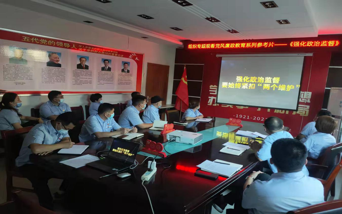 会上,公司党支部组织观看了党风廉政教育系列参考片之《强化政治监督》,告诫广大党员干部要以案为鉴、以案明纪,必须知敬畏、存戒惧、守底线,公平公正履职,增强廉洁自律和拒腐防变能力,做好本职工作,践行“净水先净人”的廉洁理念。