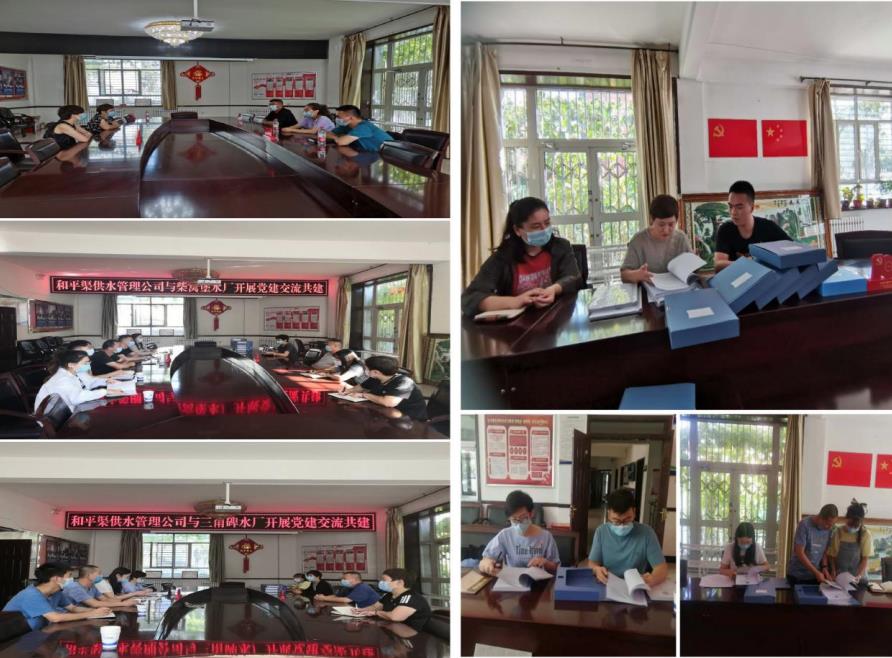 和平渠供水管理公司领导班子对三家单位的到访表示热烈欢迎,希望今后能充分利用党建平台,相互学习党建工作经验,共同提升党支部的凝聚力、战斗力和创造力。此次共建活动通过查阅党建资料、党史学习教育资料、党风廉政建设资料、工会资料及开展交流会等方式,对党建资料的规范化、党内组织生活的制度化、党支部建设的标准化以及党建与业务融合共进等方面进行了深入的交流和探讨。随后,三个党支部围绕各自党建工作中的经验、遇到的实际问题与和平渠供水管理公司党支部进行了分享交流。