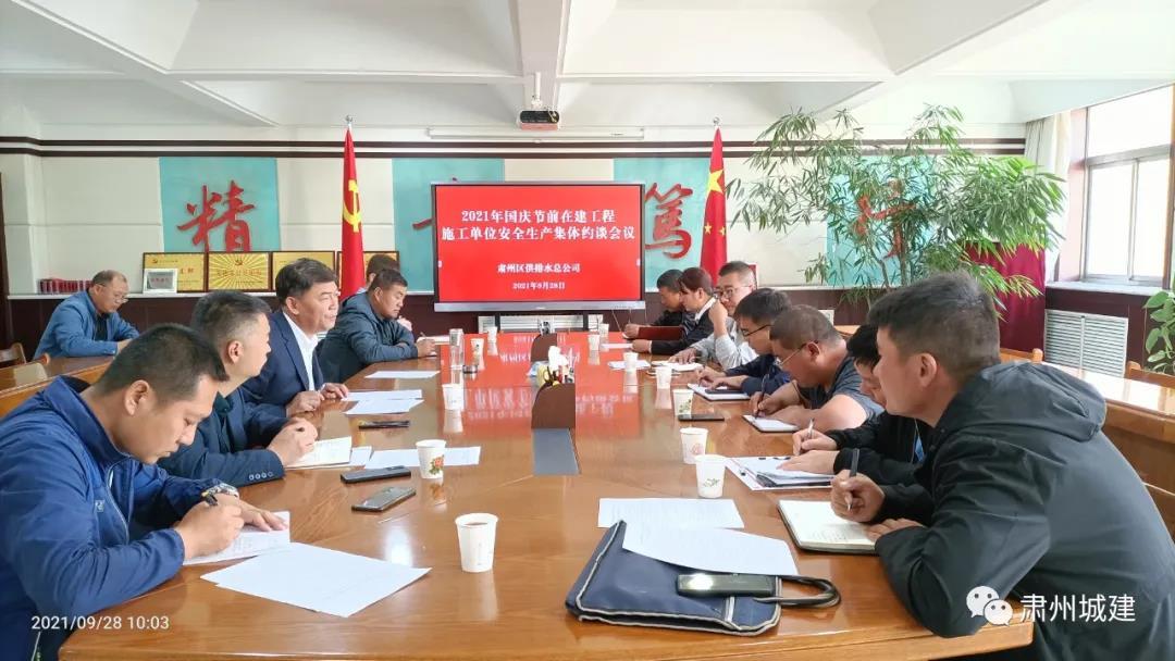 9月28日上午,区供排水总公司组织召开国庆节前在建工程施工单位安全生产集体约谈工作会议,通报在建工程项目进展情况,安排部署国庆节期间建筑施工安全生产和施工扬尘整治工作。区供排水总公司班子成员、工程技术科负责人及5家施工企业代表参会。