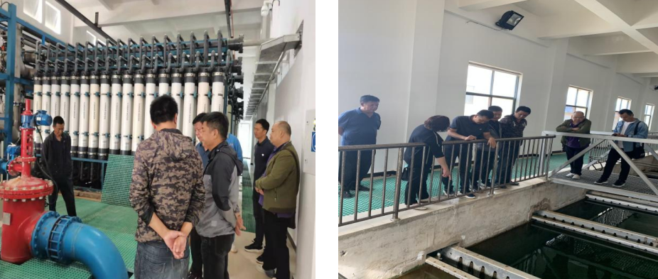 检查组由海东分公司总经理杨镜忠带队,实地查看了各厂重点生产工艺段、设备运行情况、厂容厂貌、相关资料台账等,对近期进出厂水水质进行了详细了解,现场听取近期水质情况汇报、生产管理工作开展情况以及下一步工作计划。