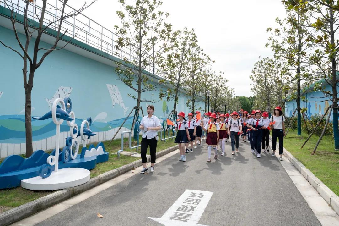 在讲解员的带领下,近20组少先队员和青年家长重温昆山之路奋斗历程,参观我市首座水处理科普教育基地——淀山湖琨澄水质净化有限公司,在这个集普及知识、科学探索为一体的综合性示范教育基地,沉浸式观摩“花园式”污水处理厂让浊流变清波的生产运营理念。