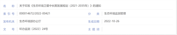 关于印发《生态环境卫星中长期发展规划(2021-2035年)》的通知