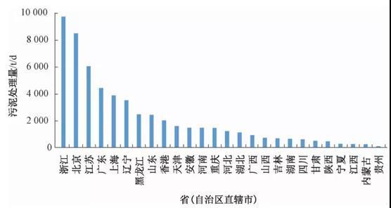 图1 2017年我国城市污泥集中处理项目处理能力统计