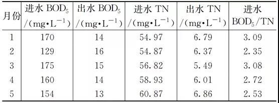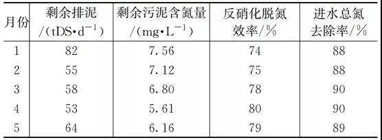 因采用MBR工艺,污泥浓度日常控制在6 000~8 000 mg/L,污泥泥龄为40 d以上。较高的污泥浓度及污泥泥龄为内源反硝化提供了条件;