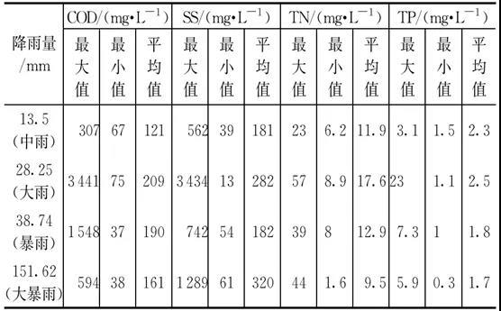 因此,短时集中降雨特别是前峰雨,CSOs污染最为严重,而连续的中、低强度降雨特别是后峰雨,可充分发挥截流设施的截流效能,CSOs污染则较轻,见图1。