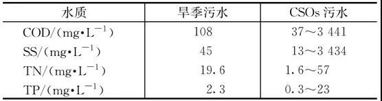 表3为武汉市喻家湖片区旱季污水及雨季时CSOs污水水质情况。