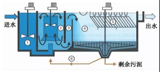 (2)污泥浓缩同步完成,外排污泥浓度高(20~40g/L),可直接进行脱水,无需再进行浓缩,节省了污泥后续处理的投资及运行费用。