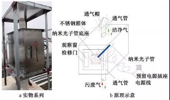 设计建议:通气管伸顶通气,可适当合并减少出屋面通气管数量。在管口设置纳米光子净化装置,如图5所示。或预留设置条件便于快速转换。