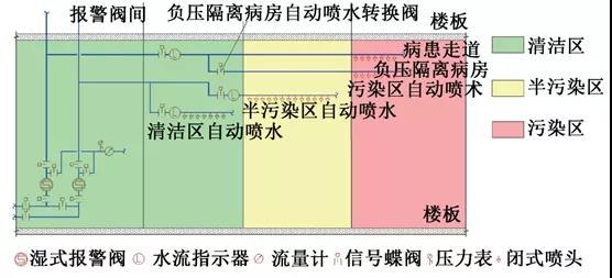 (3)要点3简析:现行《传染病医院建筑施工及验收规范》(GB 50686-2011)9.3.4条规定:“负压隔离病房内不应安装各类灭火用喷头。”。“平疫结合”设计中此类病房平时设置自动喷水灭火系统保护,一旦“疫时”转换成负压隔离病房应考虑自动喷水灭火系统误喷对危重病人的误伤害问题。