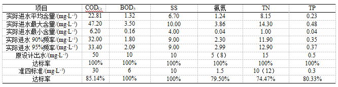 经对比分析实际进水水质情况和原设计进水水质,本提标改造工程设计进水水质延用原设计进水水质,出水按照当地要求执行地表Ⅳ类水标准,具体如表3所示。
