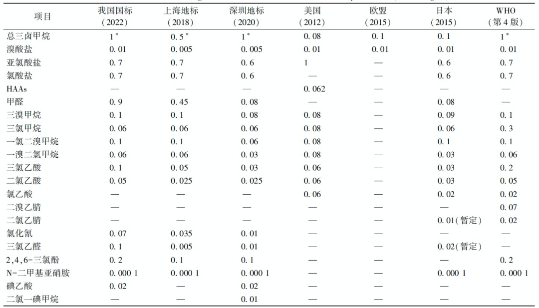 表1消毒副产物的国内外控制标准(单位:mg/L)