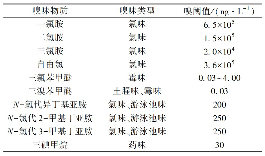表2消毒衍生的典型有机和无机嗅味物质及其嗅阈值