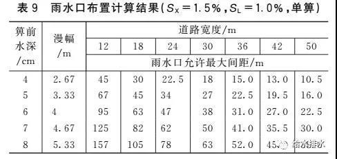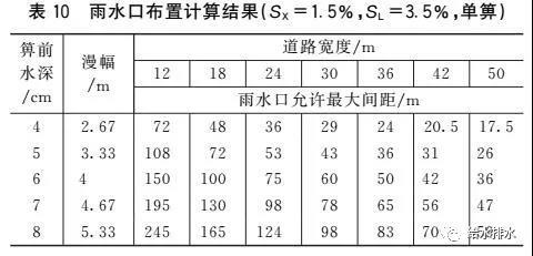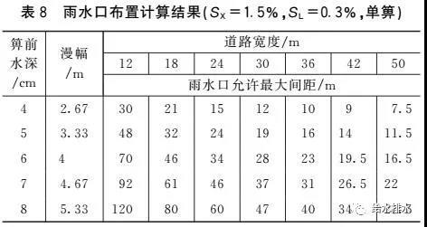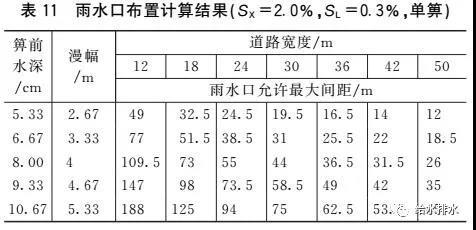 (3)当道路纵坡和漫幅不变时,雨水口允许最大间距随道路横坡增大而增大。
