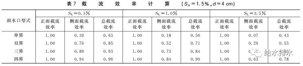(2)单方向纵坡坡段的雨水口,增加其数量将提高雨水口正面拦截速度和侧面截流效率,但对雨水口总截流效率提升作用有限,而我国标准图集推荐泄水能力随箅子数量增加而快速增加(见表7)。