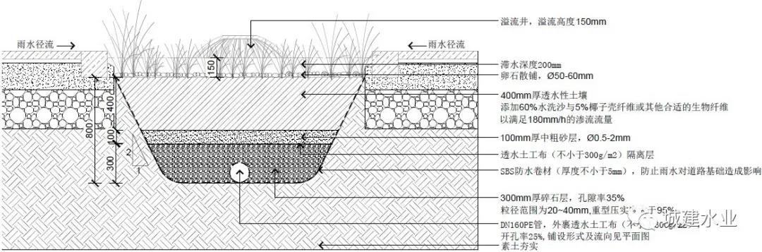 (5)碎石沟主要布置于坡度较大的道路两侧,用于收集路面和铺装雨水。