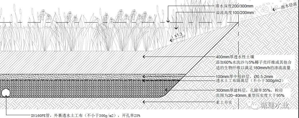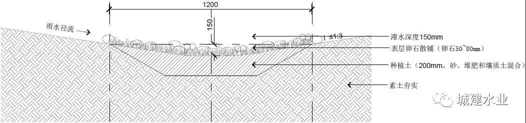 主要布置于低洼绿地及传输型植草沟的下游,用于净化、滞蓄、缓排地表雨水。