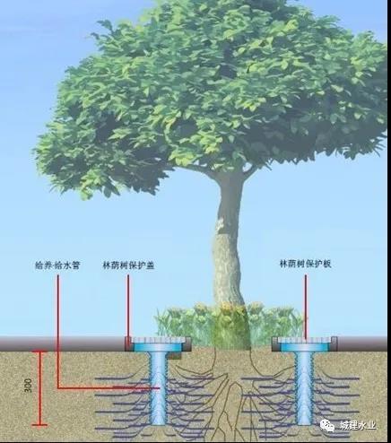 (3)生态树池主要布置于铺装和停车位中间,以及主干道两侧,用于收集、滞蓄、净化铺装及停车位雨水。